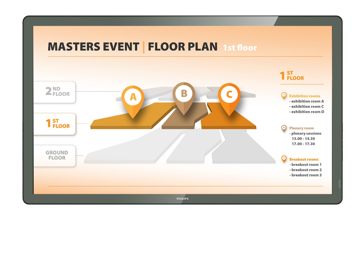 Product code:Inspire collaboration. Deliver information. This responsive Philips Multi-Touch Professional Full HD Display is ideal for multi-finger, multi-user applications, from wayfinding to presentations. Up to 10 touch points can be active at once.